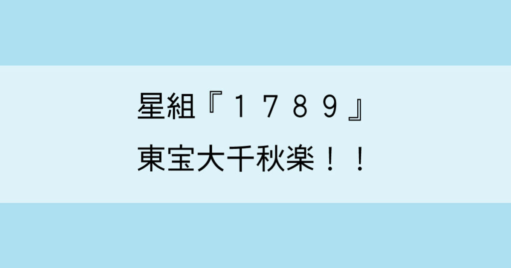 せおっちは専科、くらっちは退団…星組1789人事が出た。